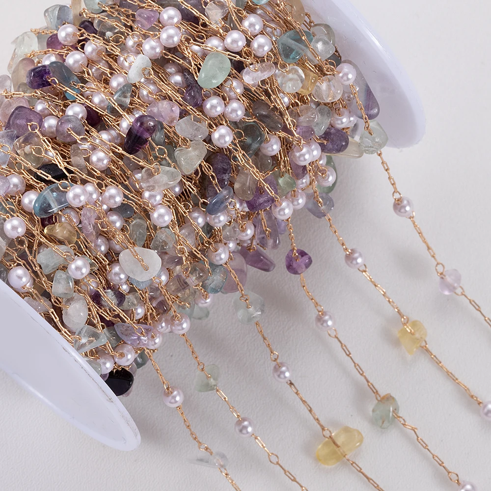 0.5/1meter Crystal Gravel Synthetic Pearl Chain Stainless Steel Chain for jewelry Making DIY Women Fashion Necklace Bracelets